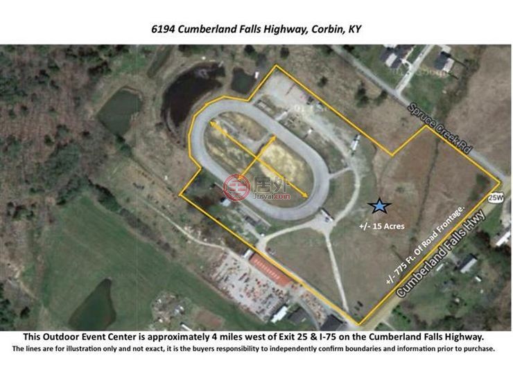 Commercial +/- 15 acre Outdoor Area Event Center with +/- 775Ft of Road Frontage and lots of vacant land for development, event parking or area sports. This complex includes a concrete block concession building, restrooms, paved track. The track & infield could be utilized for many types of area functions, a walking track for personal fitness, T-ball, Soccer and more. Located only 4 miles west of exit 25 & I-75 on US25W (Cumberland Falls Highway, Corbin KY) priced to Sell!! Offers are welcome.